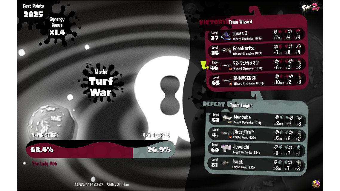 | Mode | Turf War - Splatfest (Team) | ||||||||||||||||||||||||||||||||||||||||