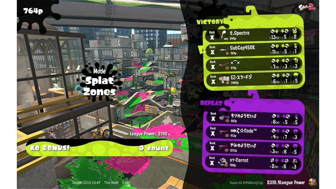 | Mode | Splat Zones - League Battle (Twin) | ||||||||||||||||