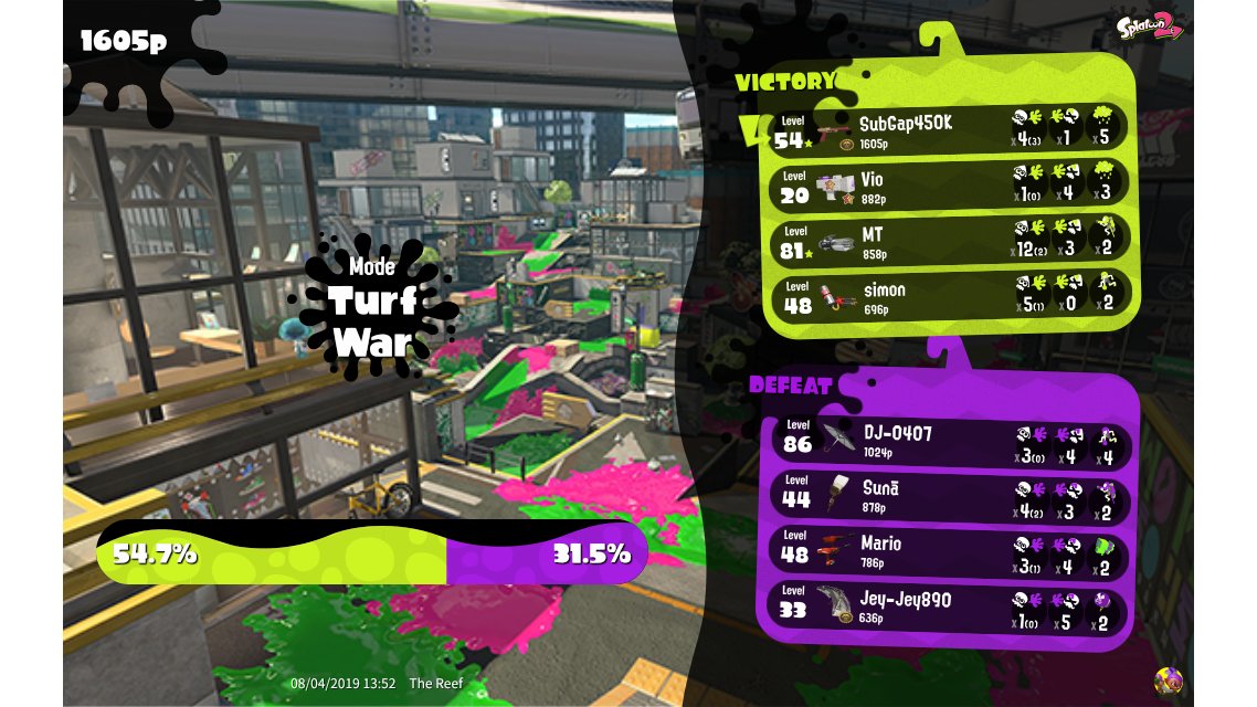 | Mode | Turf War - Regular Battle | ||||||||||||||||