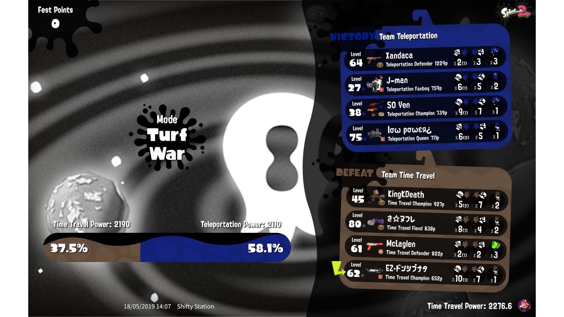 | Mode | Turf War - Splatfest (Pro) | ||||||||||||||||||||||||||||||||||