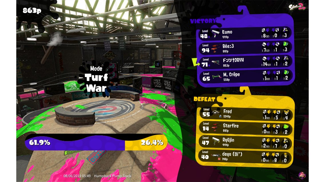 | Mode | Turf War - Regular Battle | ||||||||||||||||||||||