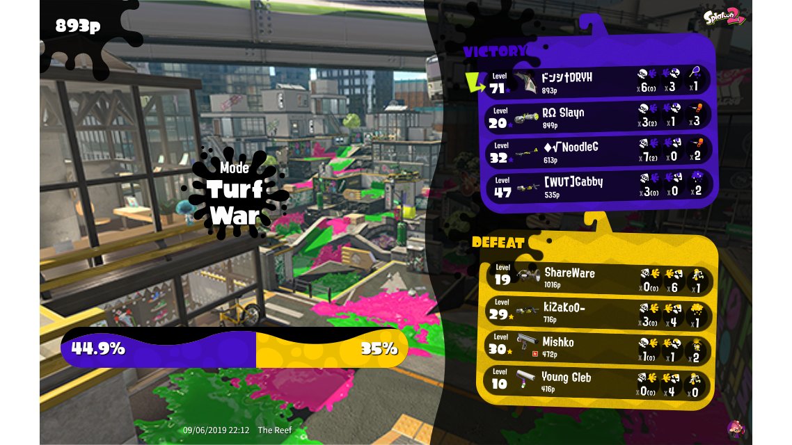 | Mode | Turf War - Regular Battle | ||||||||||||||||||||||