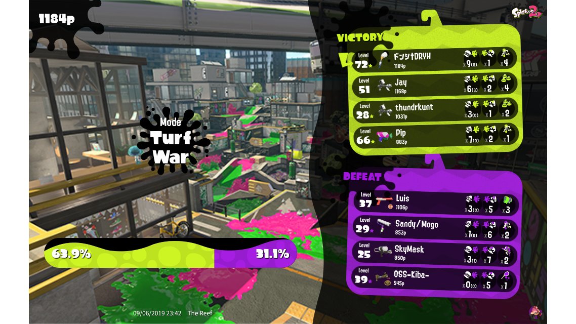 | Mode | Turf War - Regular Battle | ||||||||||||||||
