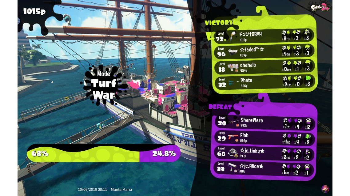 | Mode | Turf War - Regular Battle | ||||||||||||||||