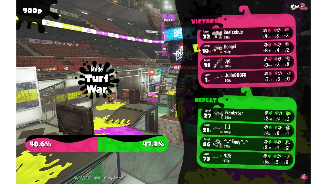 | Mode | Turf War - Regular Battle | ||||||||||||||||