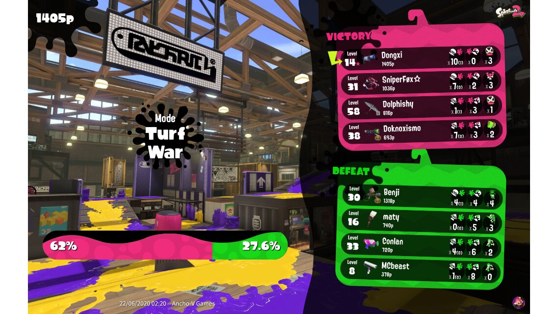 | Mode | Turf War - Regular Battle | ||||||||||||||||||||||