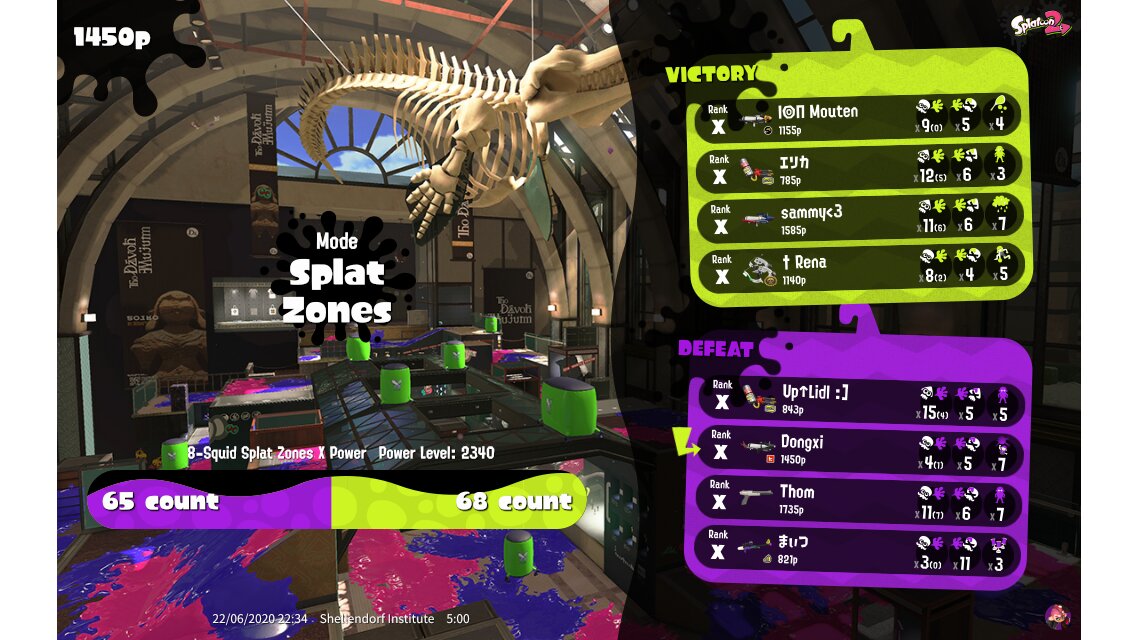| Mode | Splat Zones - Ranked Battle | ||||||||||||||||
