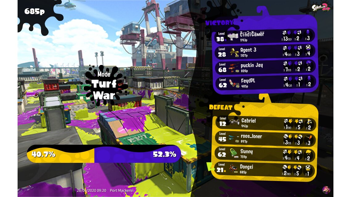 | Mode | Turf War - Regular Battle | ||||||||||||||||||||||||||||