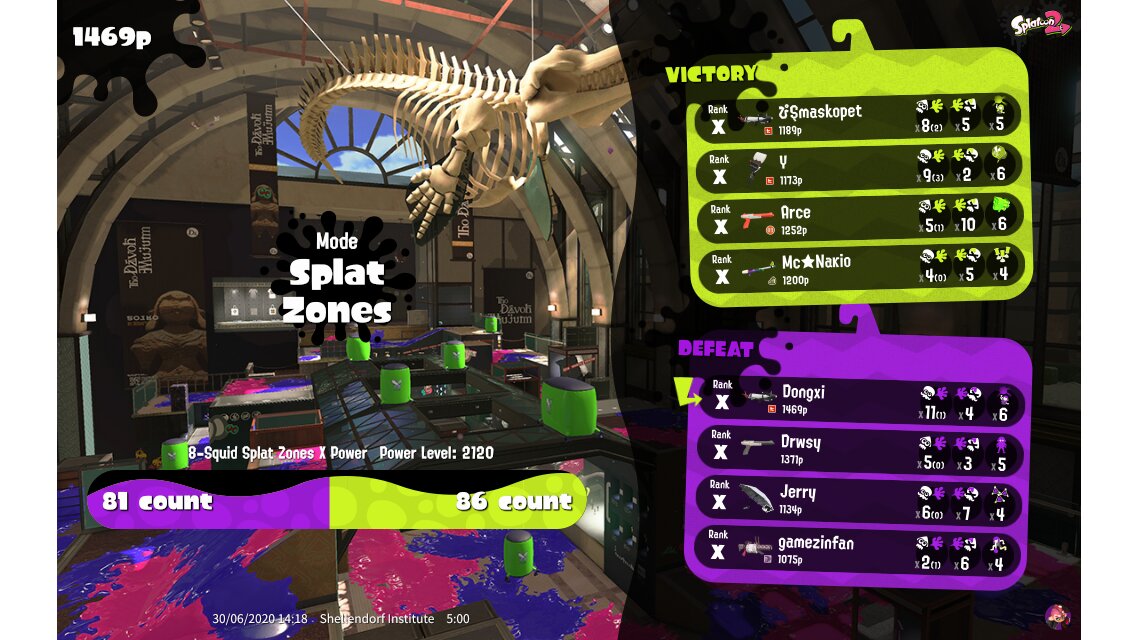 | Mode | Splat Zones - Ranked Battle | ||||||||||||||||