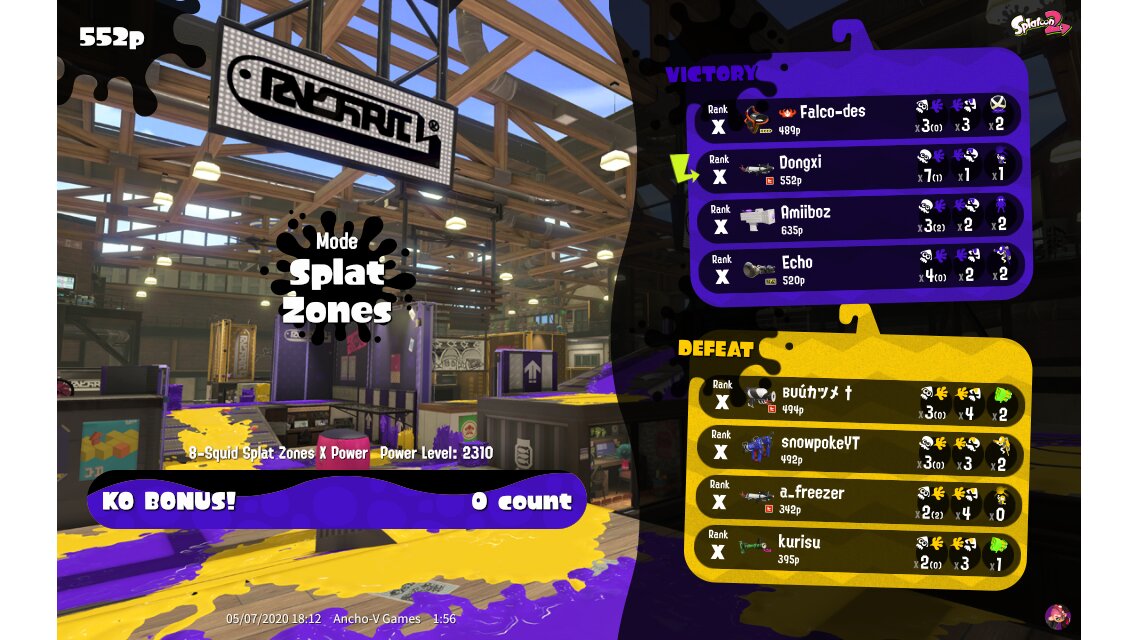 | Mode | Splat Zones - Ranked Battle | ||||||||||||||||