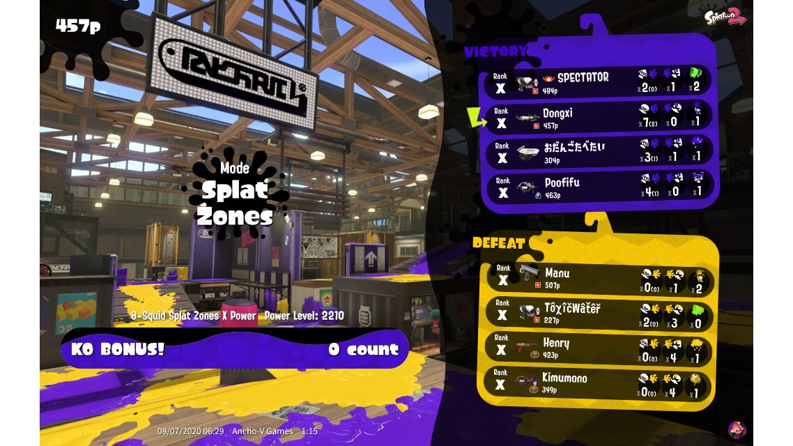 | Mode | Splat Zones - Ranked Battle | ||||||||||||||||