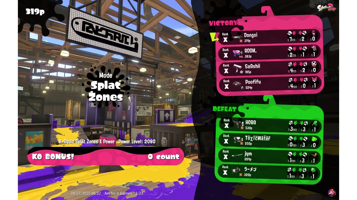 | Mode | Splat Zones - Ranked Battle | ||||||||||||||||