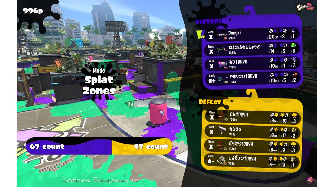 | Mode | Splat Zones - Private Battle | ||||||||||||||||