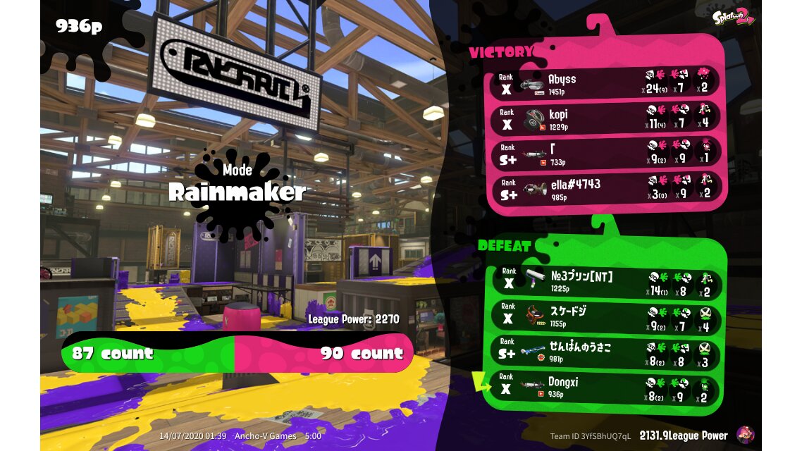 | SplatNet Battle # | 26,931 | ||||||||||||||||