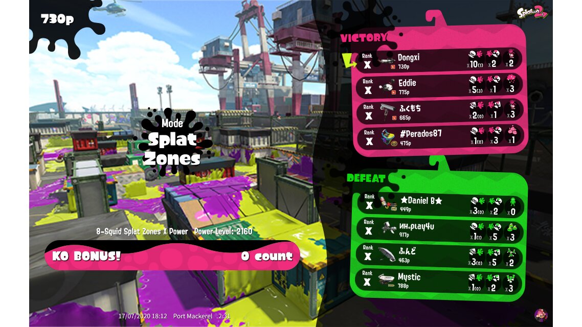 | Mode | Splat Zones - Ranked Battle | ||||||||||||||||