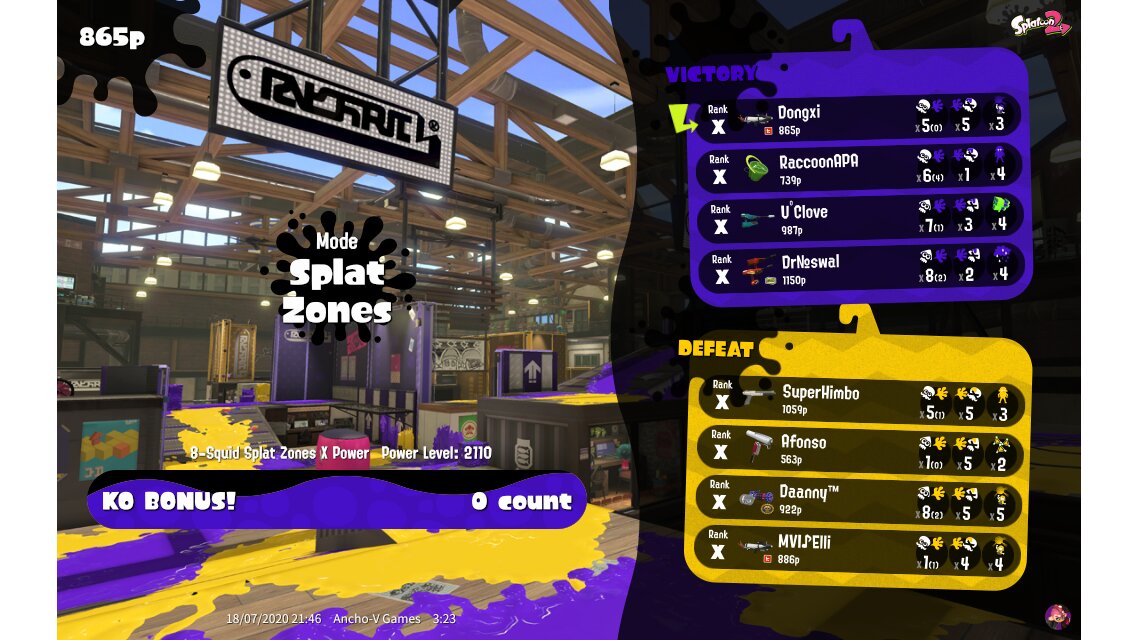 | Mode | Splat Zones - Ranked Battle | ||||||||||||||||