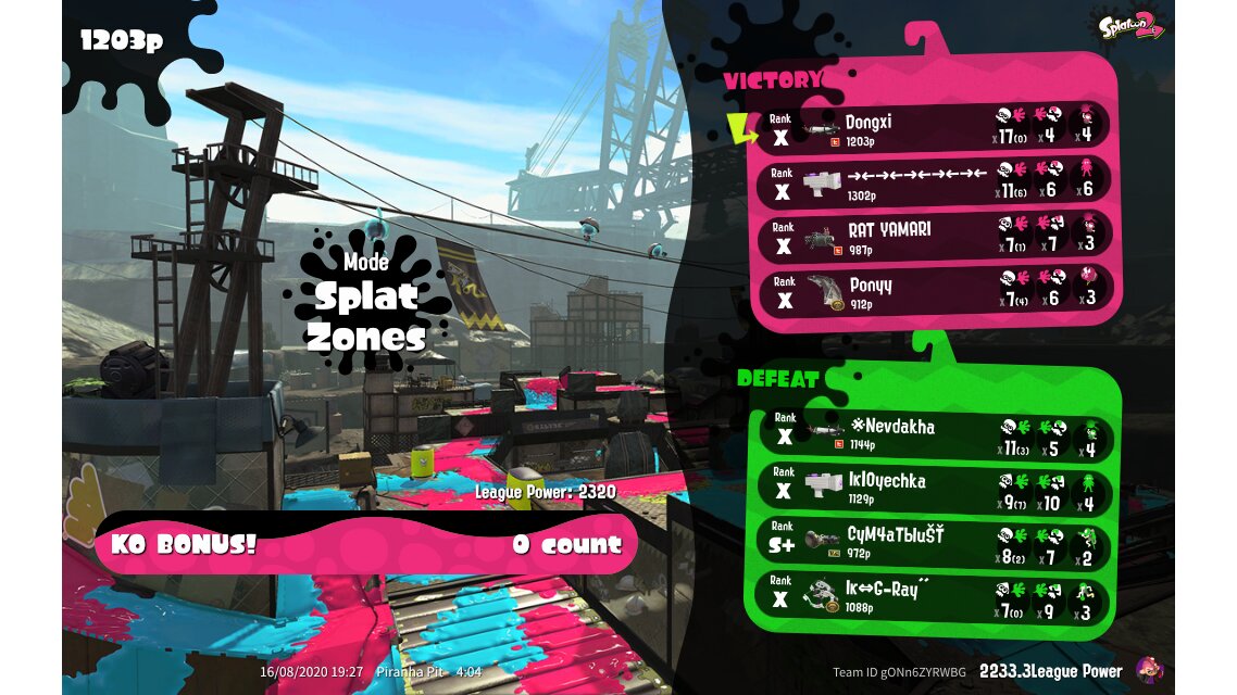 | Mode | Splat Zones - League Battle (Quad) | ||||||||||||||||