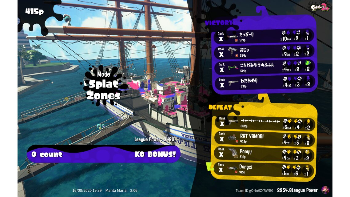| Mode | Splat Zones - League Battle (Quad) | ||||||||||||||||