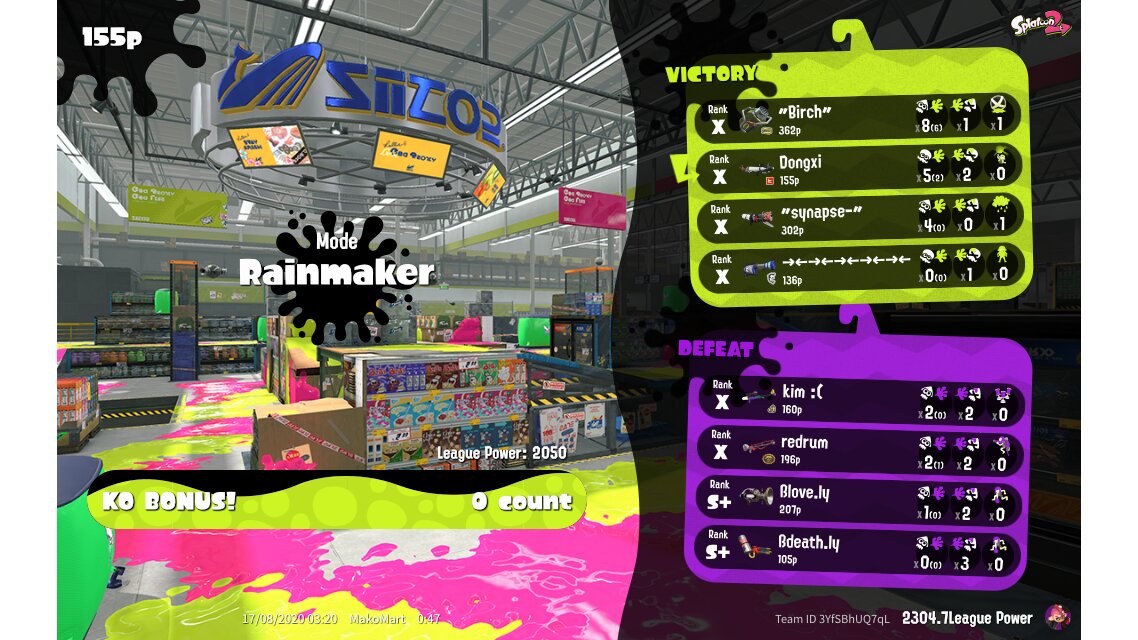 | Mode | Rainmaker - League Battle (Twin) | ||||||||||||||||