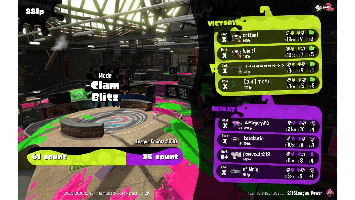 | Mode | Clam Blitz - League Battle (Twin) | ||||||||||||||||