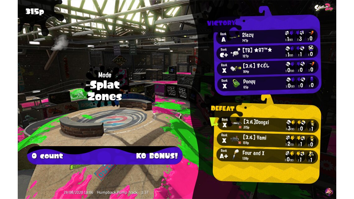 | Mode | Splat Zones - Private Battle | ||||||||||||||||