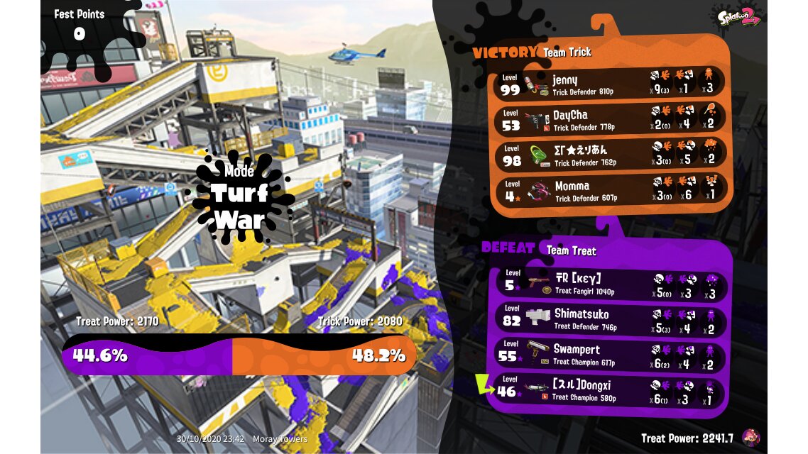 | Mode | Turf War - Splatfest (Pro) | ||||||||||||||||