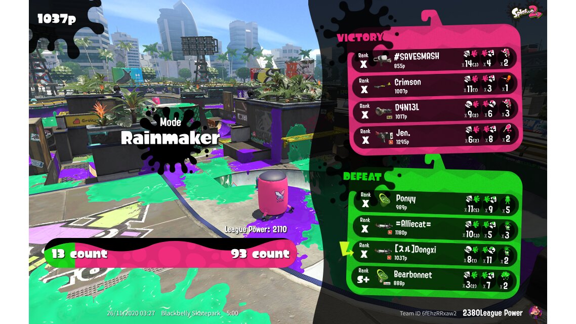 | Mode | Rainmaker - League Battle (Twin) | ||||||||||||||||