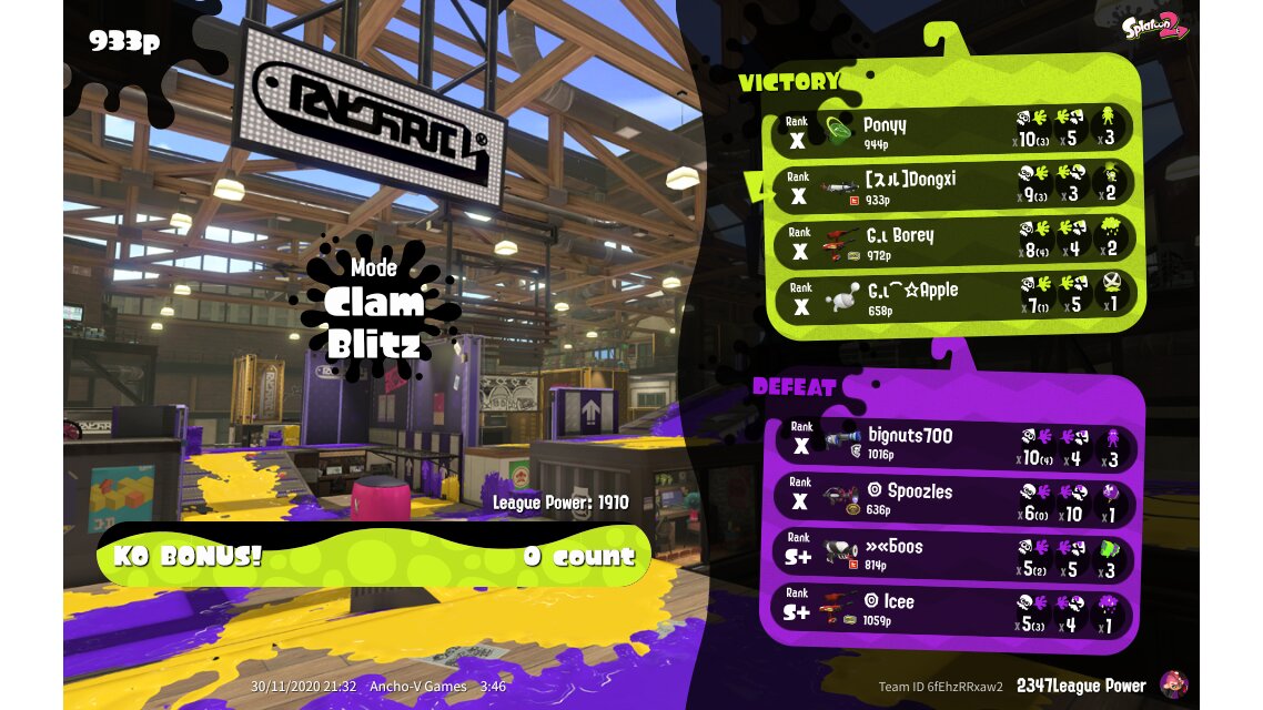 | Mode | Clam Blitz - League Battle (Twin) | ||||||||||||||||