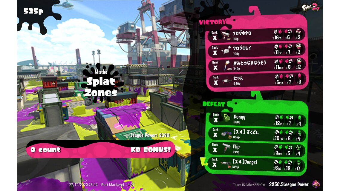 | Mode | Splat Zones - League Battle (Quad) | ||||||||||||||||