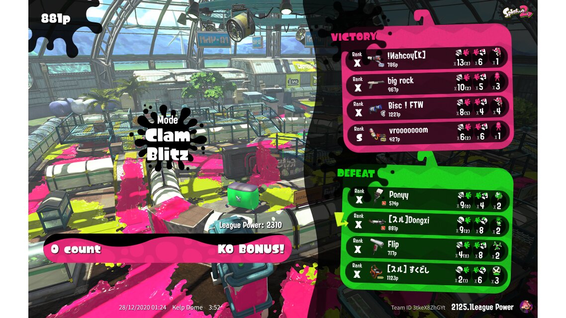 | Mode | Clam Blitz - League Battle (Quad) | ||||||||||||||||