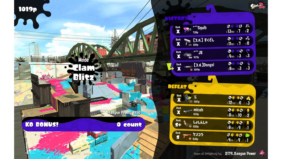 | Mode | Clam Blitz - League Battle (Twin) | ||||||||||||||||