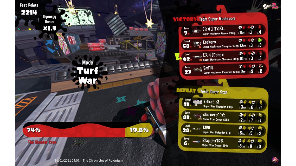 | Mode | Turf War - Splatfest (Team) | ||||||||||||||||