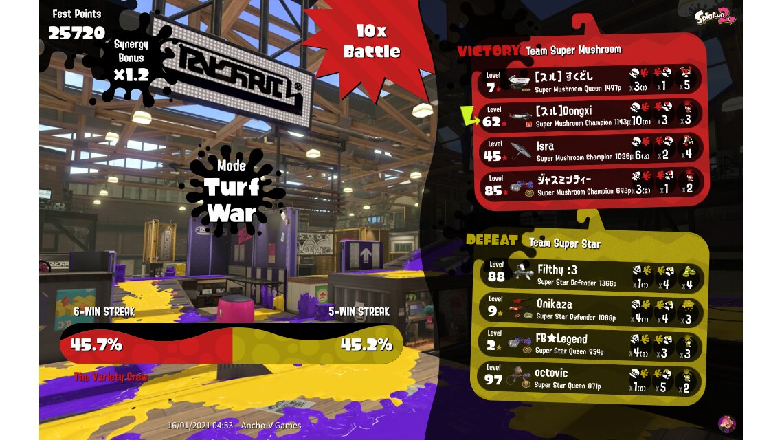 | Mode | Turf War - Splatfest (Team) | ||||||||||||||||