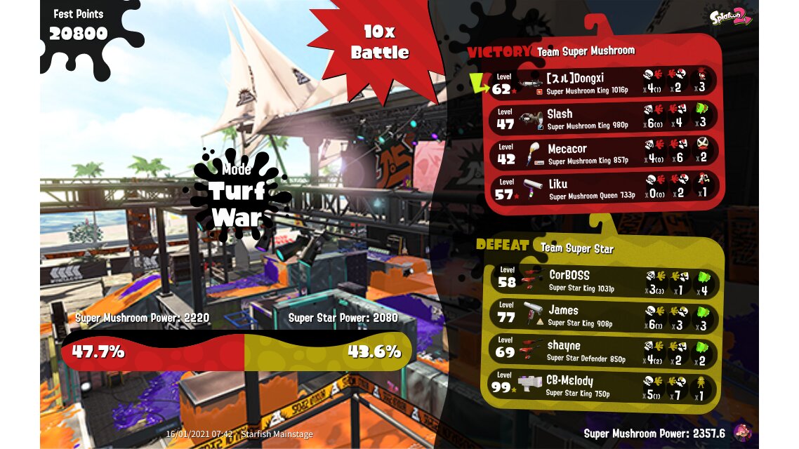 | Splatfest Power | 2,357.6 | ||||||||||||||||