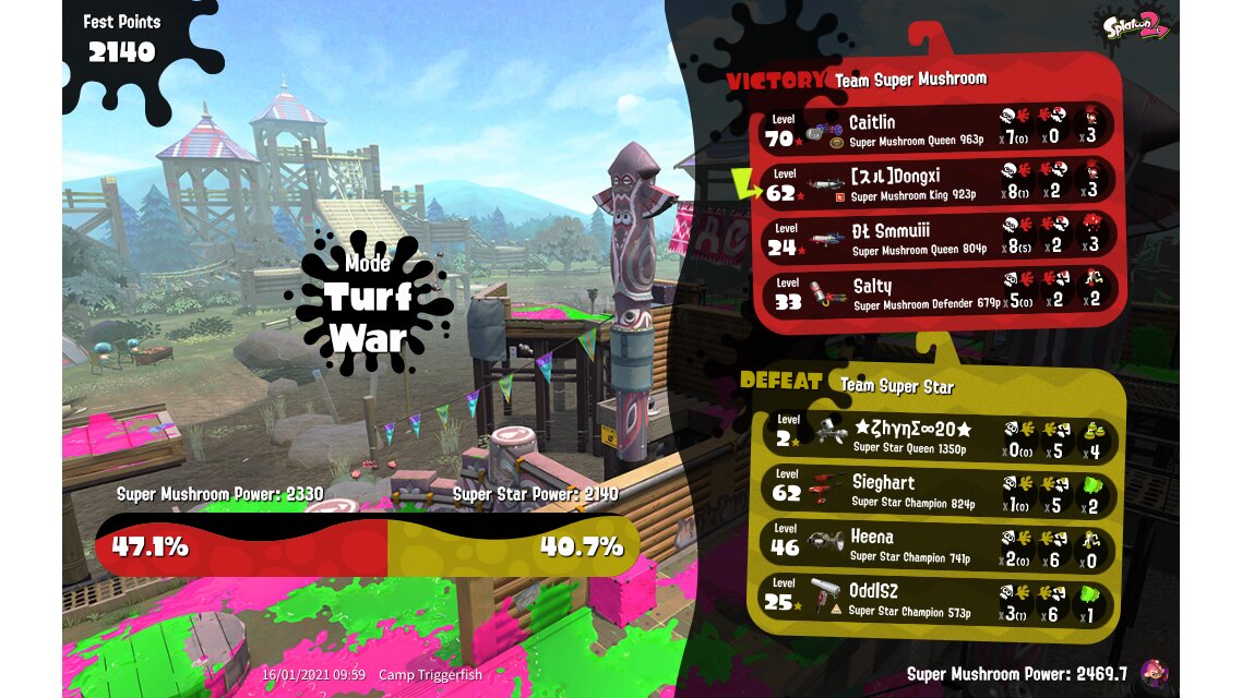 | Mode | Turf War - Splatfest (Pro) | ||||||||||||||||