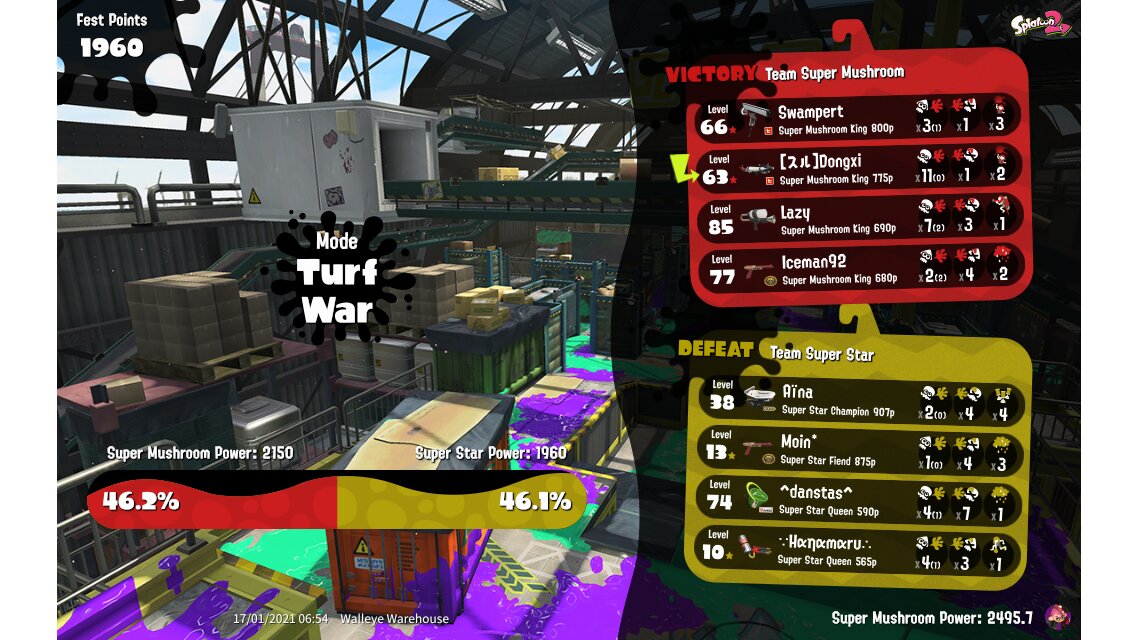 | Mode | Turf War - Splatfest (Pro) | ||||||||||||||||