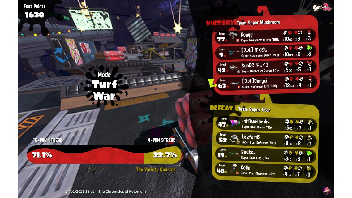 | Mode | Turf War - Splatfest (Team) | ||||||||||||||||