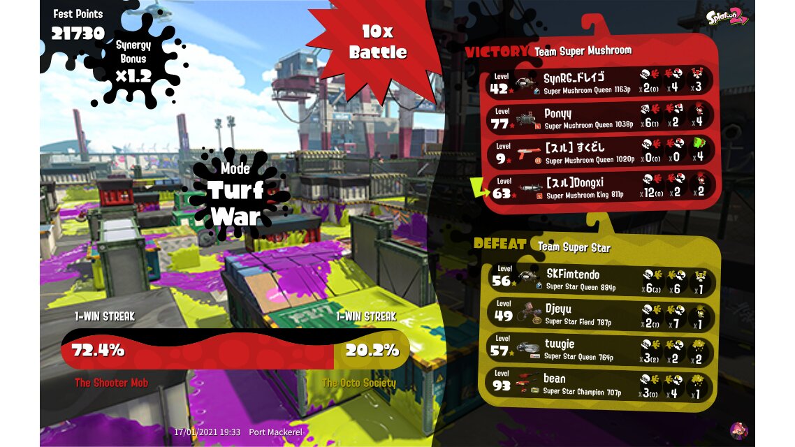 | Mode | Turf War - Splatfest (Team) | ||||||||||||||||