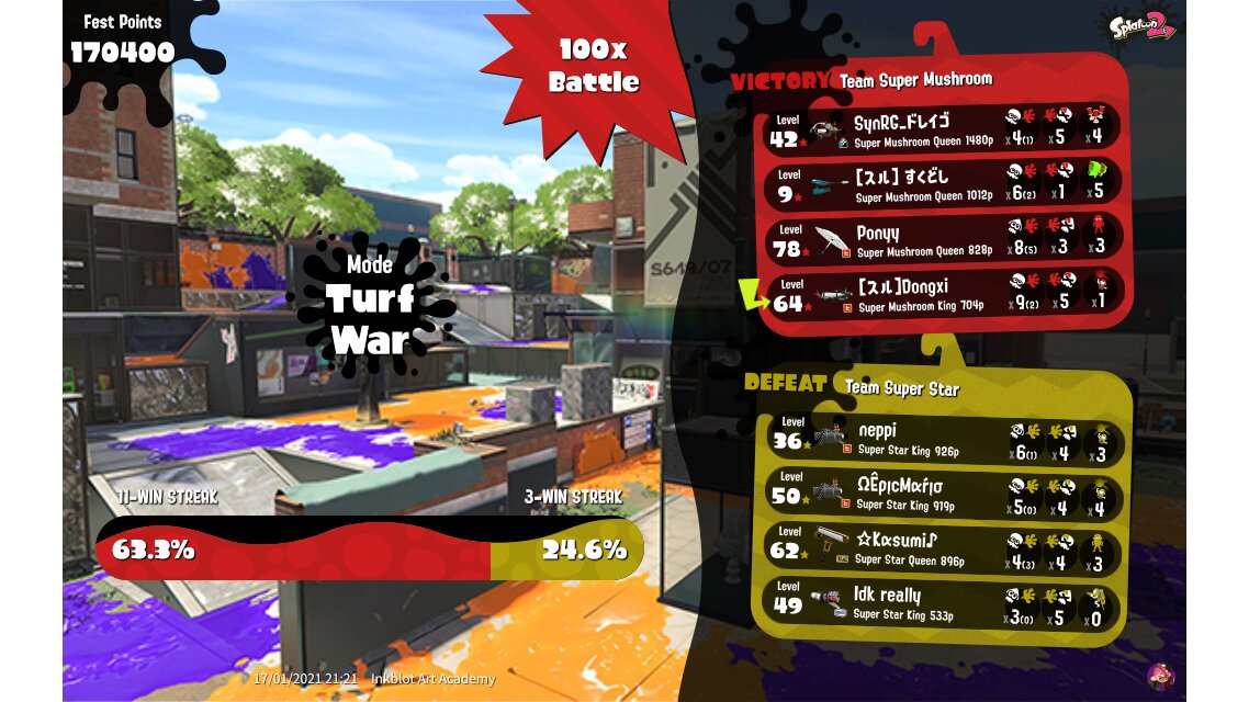 | Mode | Turf War - Splatfest (Team) | ||||||||||||||||