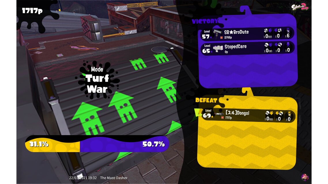 | Mode | Turf War - Private Battle | ||||||||||||||||||||||