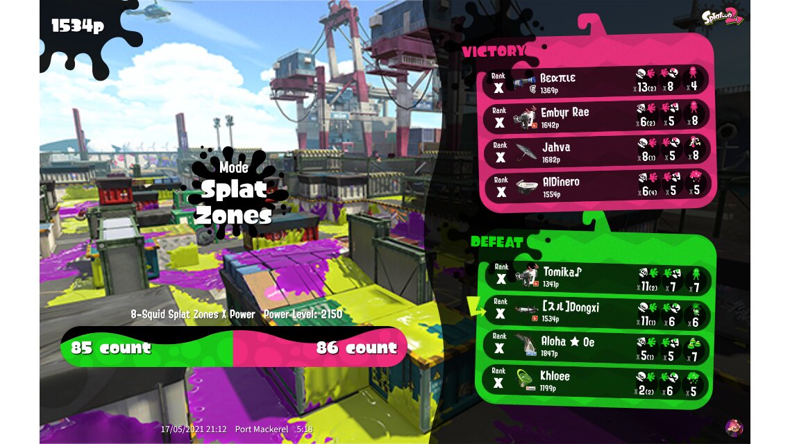 | Mode | Splat Zones - Ranked Battle | ||||||||||||||||