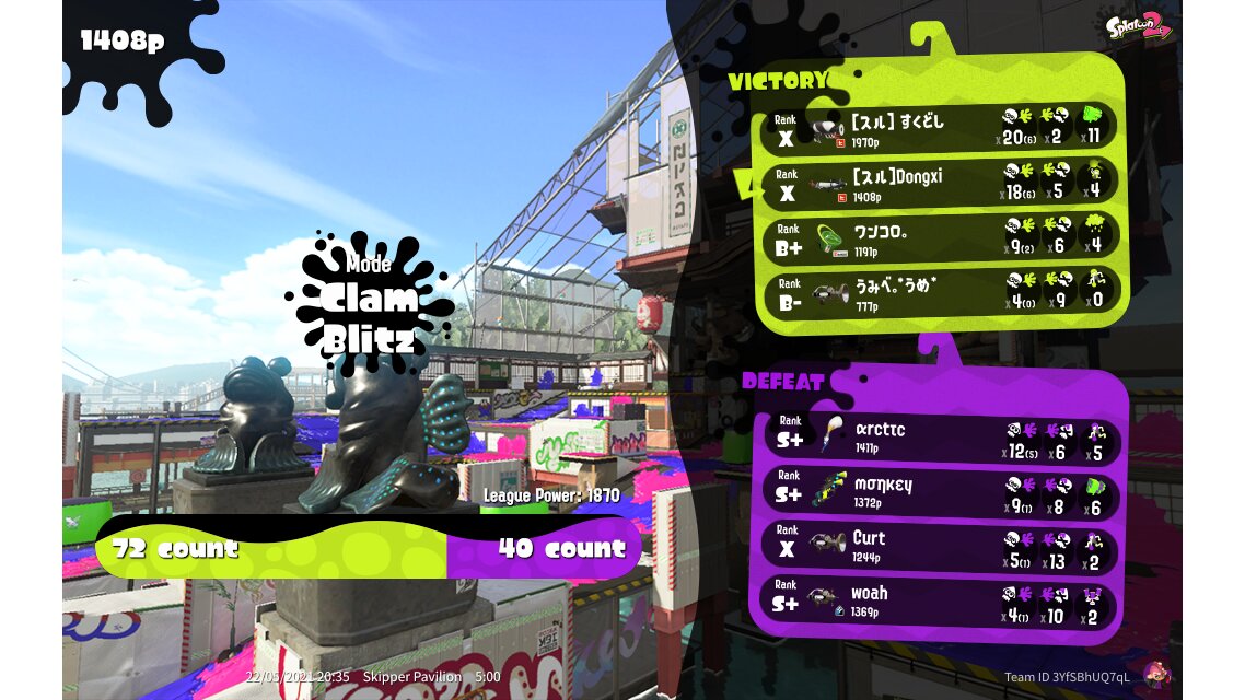 | Mode | Clam Blitz - League Battle (Twin) | ||||||||||||||||
