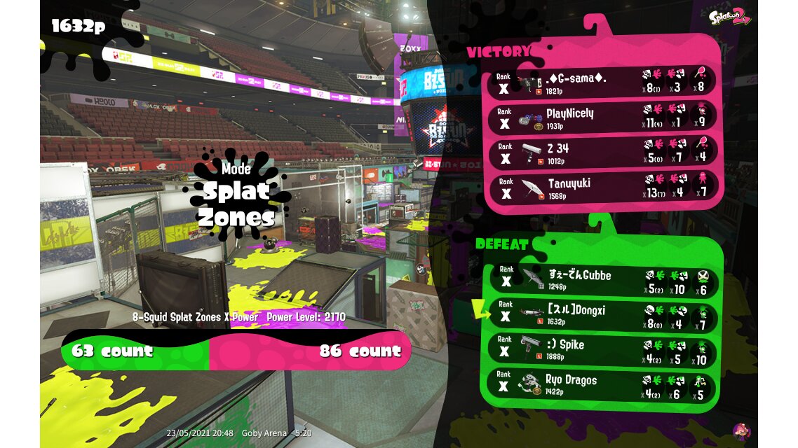 | Mode | Splat Zones - Ranked Battle | ||||||||||||||||