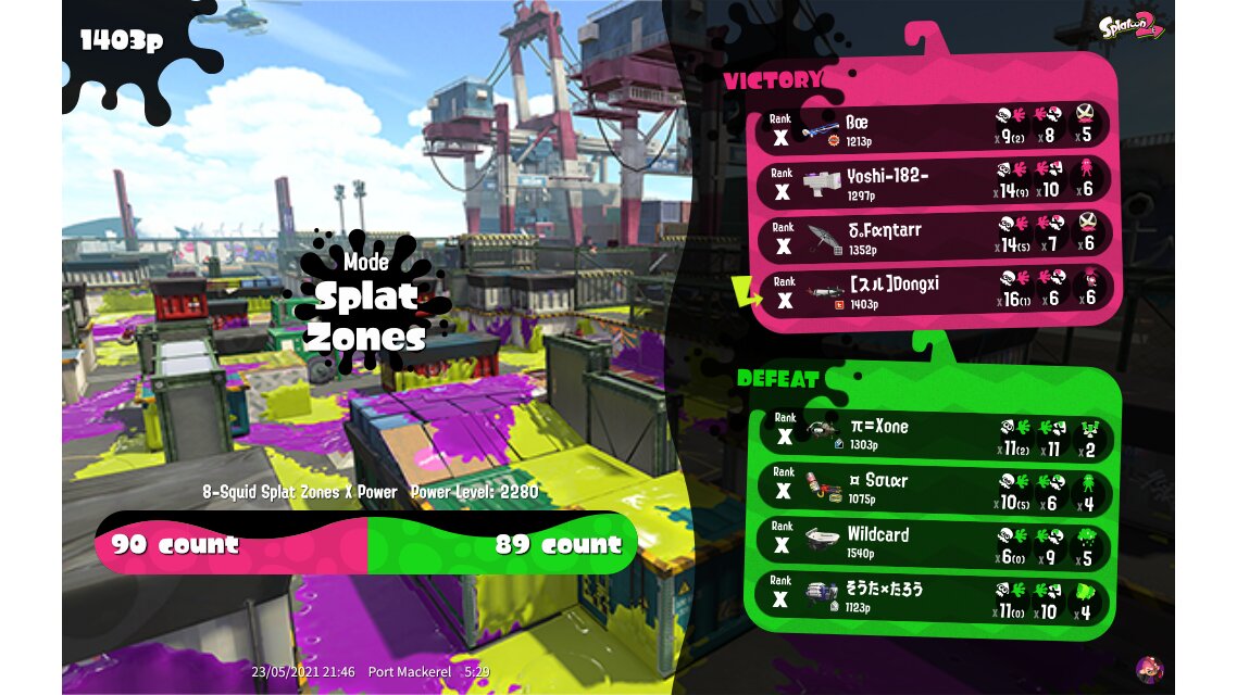 | Mode | Splat Zones - Ranked Battle | ||||||||||||||||