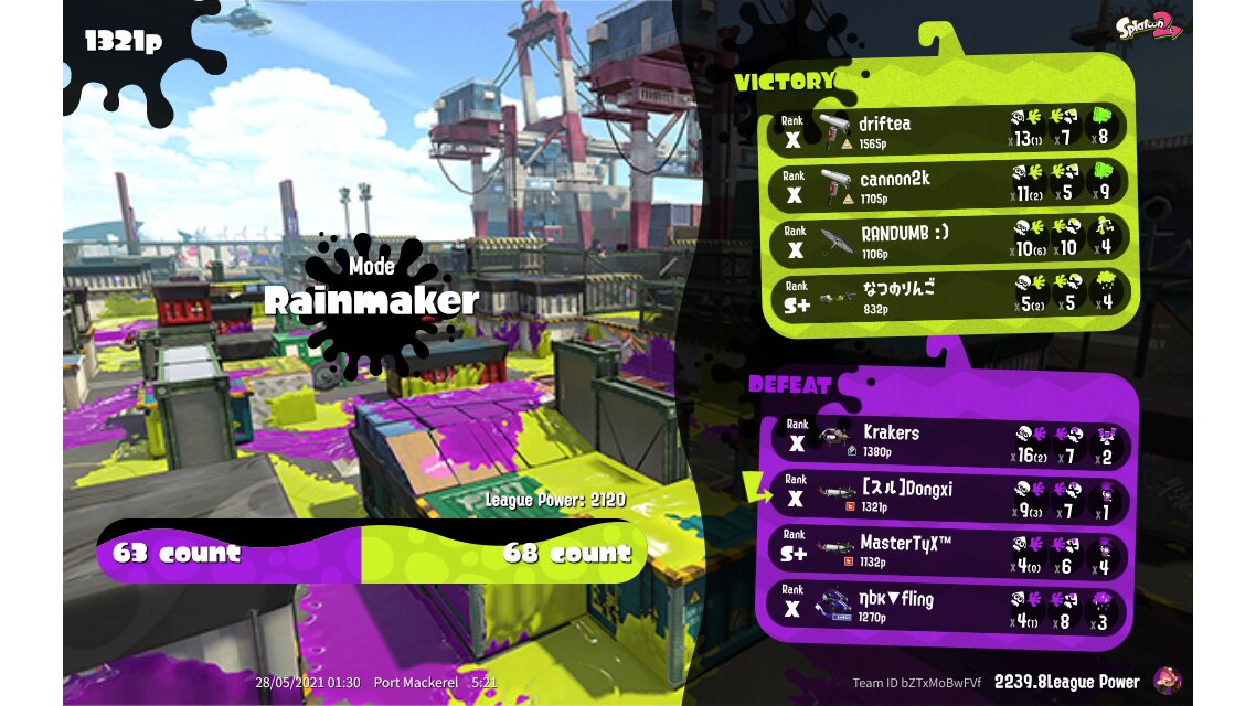 | Mode | Rainmaker - League Battle (Twin) | ||||||||||||||||