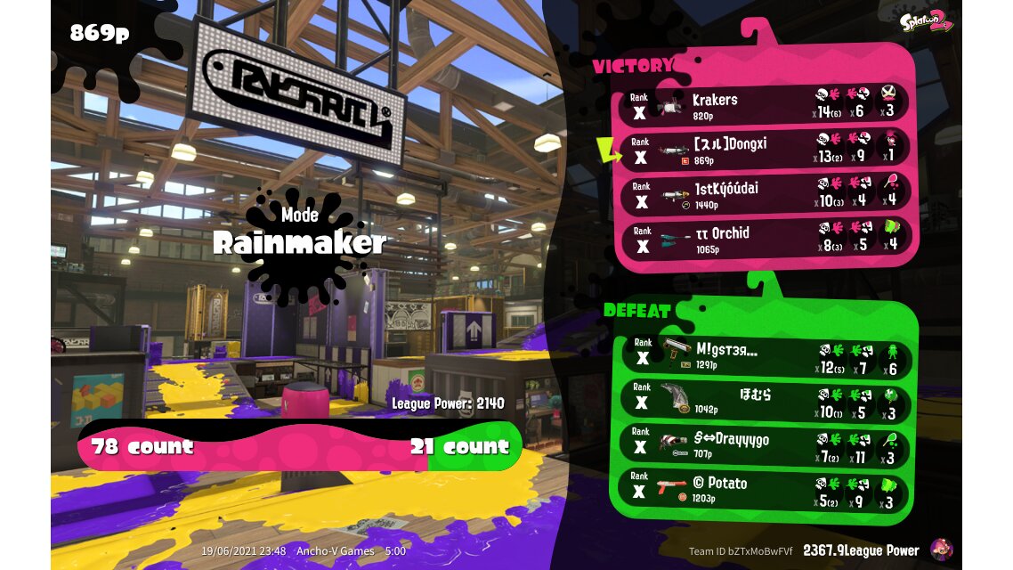| Mode | Rainmaker - League Battle (Twin) | ||||||||||||||||