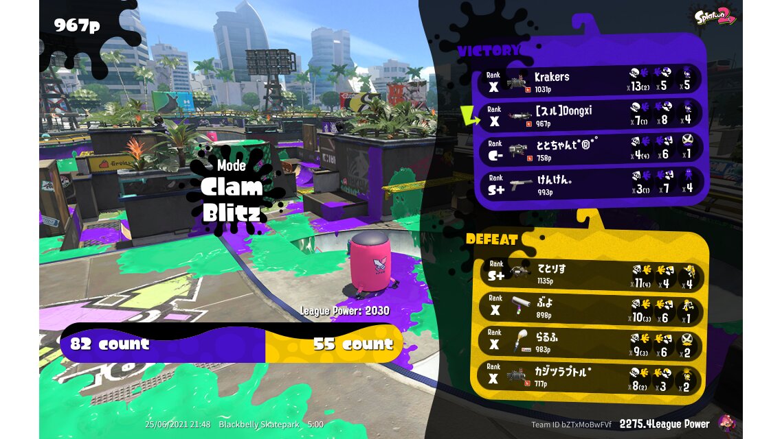 | Mode | Clam Blitz - League Battle (Twin) | ||||||||||||||||