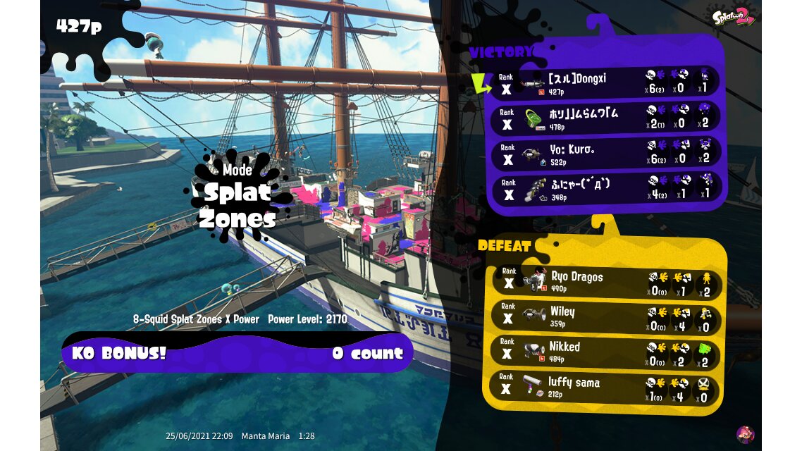 | Mode | Splat Zones - Ranked Battle | ||||||||||||||||