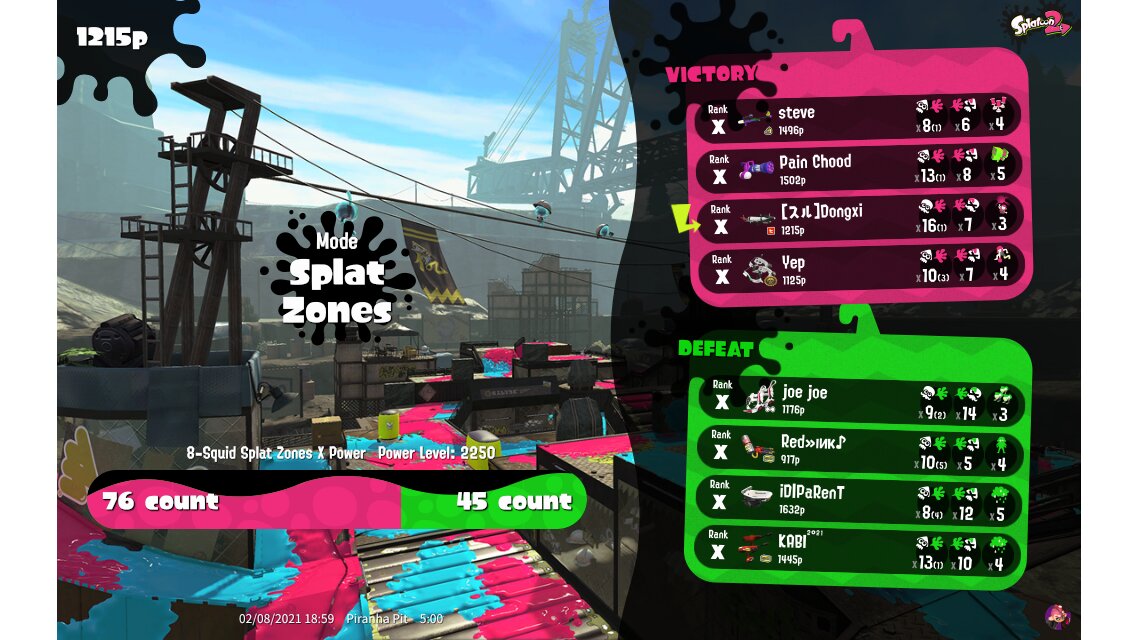 | Mode | Splat Zones - Ranked Battle | ||||||||||||||||