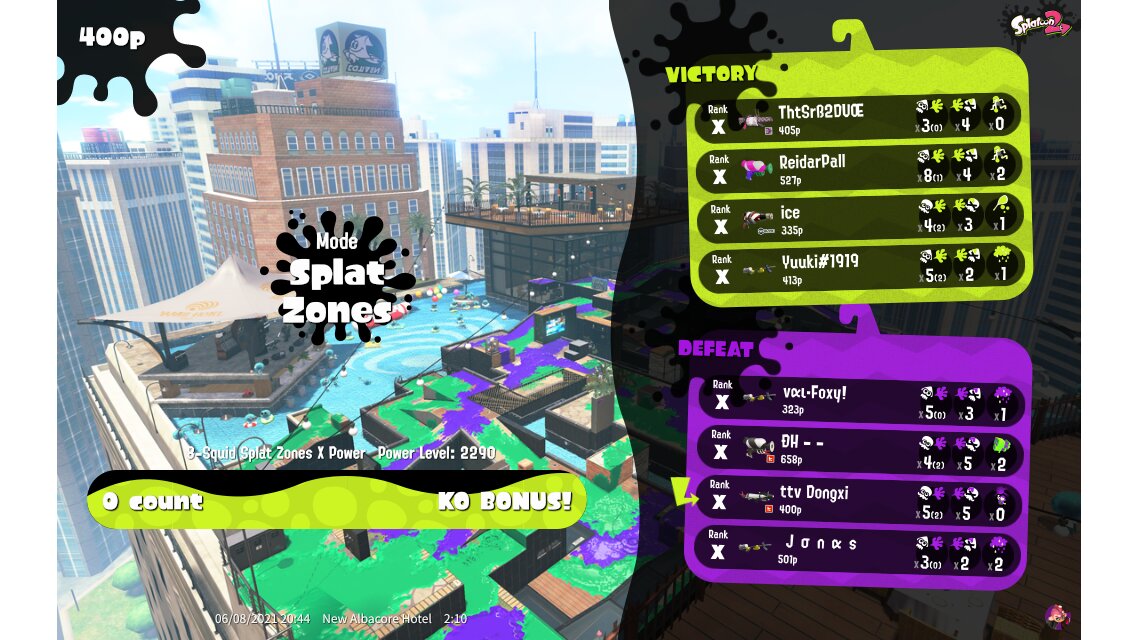| Mode | Splat Zones - Ranked Battle | ||||||||||||||||